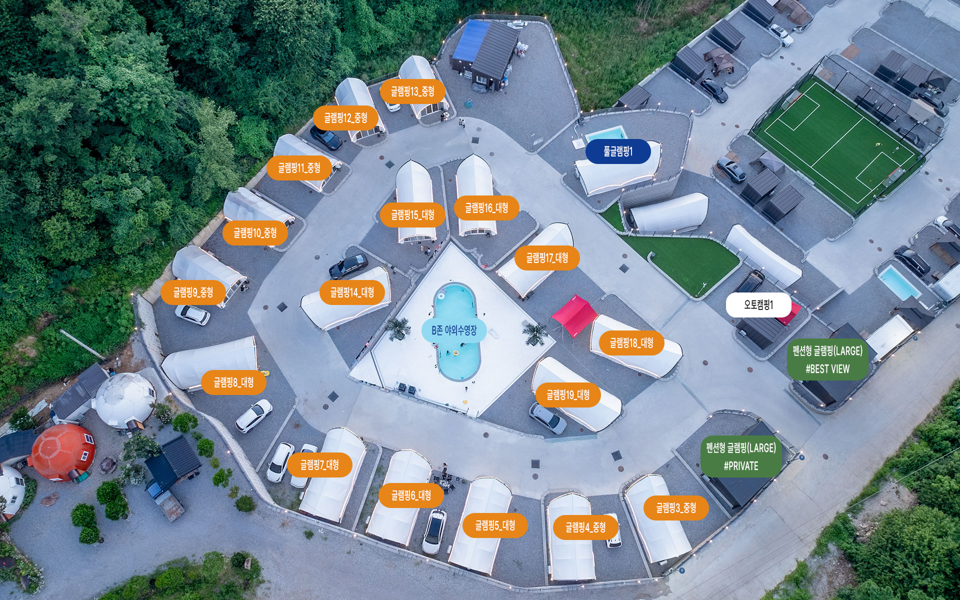 저마다의 공간에서 나만의 속도로 하루를 누리는 오토캠핑장.